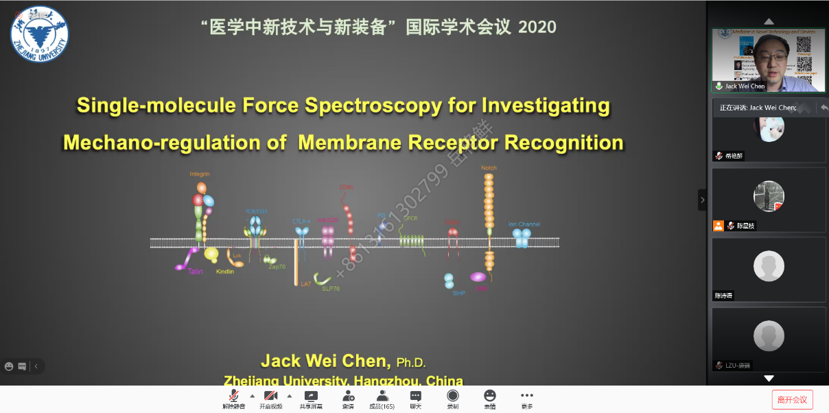 本次会议由北京欧美大片ppt免费大全生物医学工程高精尖创新中心于健教授主持,来自浙江大学医学院陈伟教授,应邀作了题为 “Single-molecule Force Spectroscopy for Investigating Mechano-regulation of Membrane Receptor Recognition”的精彩报告,共170名相关领域的专家学者参加了此次会议。