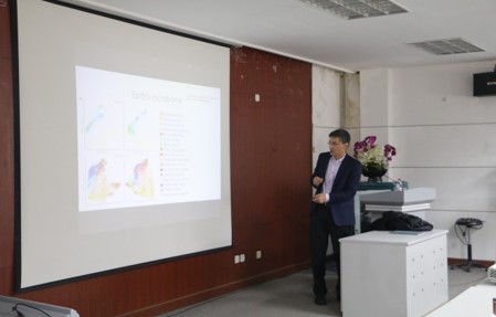 2018年10月21日上午,加拿大渥太华大学系统生物学研究所 Daniel Figeys教授访问我校,在逸夫科学馆416会议室为北航师生作了主题为“Microbiomes around the world and enabling technologies”的学术报告。在报告中,Figeys教授不仅生动形象的为大家展示了目前世界范围内重大的微生物项目以及最前沿的微生物相关研究手段。