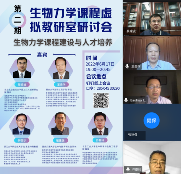 2022年6月17日,生物力学课程虚拟教研室第二次教学研讨会通过虚拟教研室平台成功召开。围绕 “生物力学课程建设与人才培养”的主题,虚拟教研室主任北京欧美大片ppt免费大全樊瑜波教授、重庆大学王贵学教授、浙江大学季葆华教授、西安交通大学张建保教授和北京工业大学乔爱科教授作为受邀嘉宾分享了自己的宝贵经验和育人理念,另外来自40余家不同单位的90余名教学专家参加了会议并围绕主题开展了热烈的讨论。