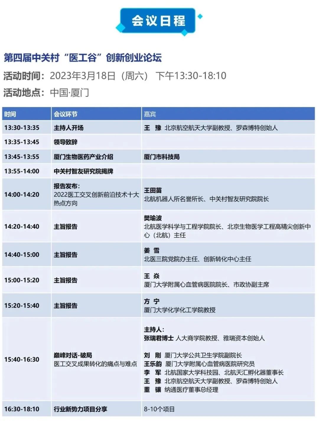 为此,中关村智友研究院联合北京生物医学工程高精尖创新中心(北航)、北京大学第三医院创新转化中心、北航天汇孵化器、厦门产业技术研究院等单位,将于3月18日在厦门正式召开《第四届中关村“医工谷”创新创业论坛》,旨在借助“医工谷”这一医工交叉创新平台,携手厦门千亿规模生物医药产业高地,共同打造医疗产业创新服务新型合作平台,为我国医疗产业变革添砖加瓦。作为本届论坛的重要成果之一,“2023医工交叉创新战略前沿技术十大趋势”将于论坛期间重磅发布。