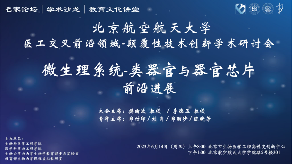 2023年6月14日,在北京欧美大片ppt免费大全成功举办了医工交叉前沿领域—颠覆性技术创新学术研讨会:微生理系统-类器官与器官芯片前沿进展。本研讨会由生物与医学工程学院、医学科学与工程学院、生物力学与力学生物学教育部重点实验室、教育部生物力学课程虚拟教研室、高端医疗装备与器械国家医学攻关产教融合平台联合主办,樊瑜波教授和李德玉教授担任研讨会大会主席,郑付印、刘肖、郑丽沙、陈晓芳四位青年老师担任青年主席。