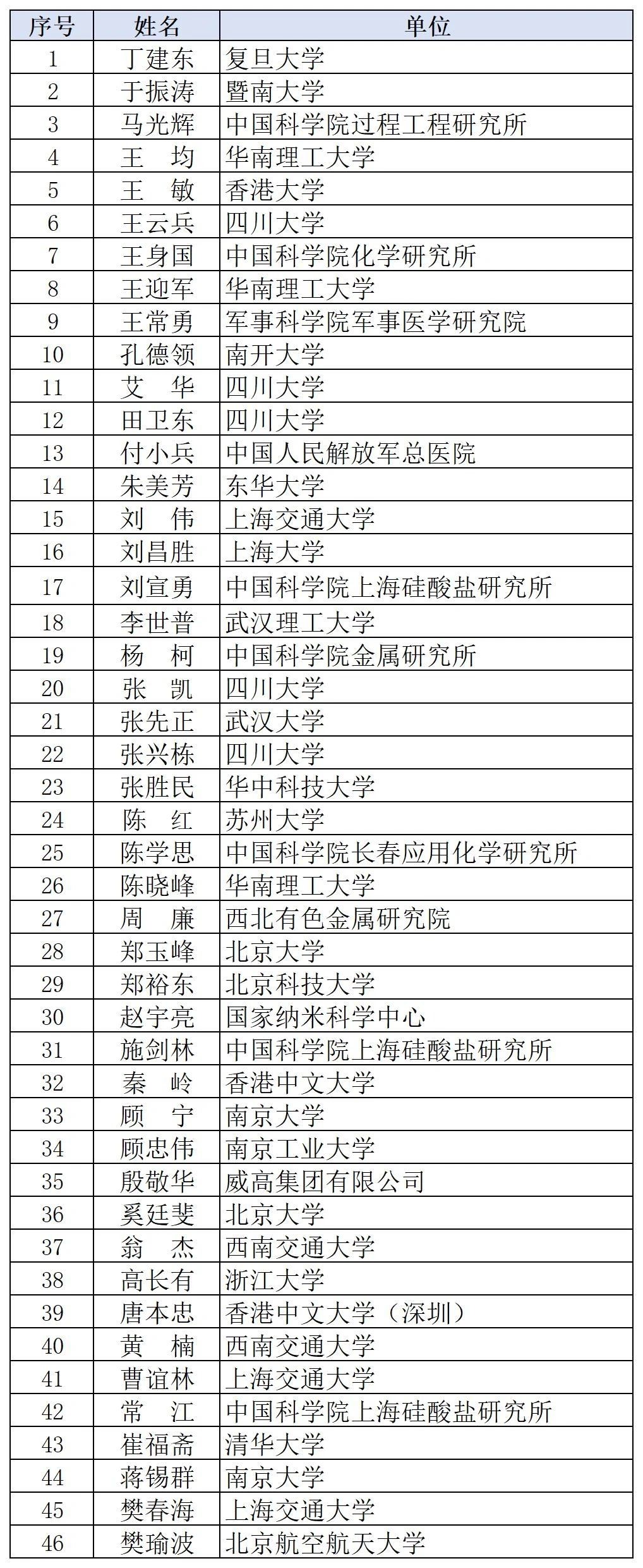 谨向当选的中国生物材料学会首届会士们致以热烈的祝贺!