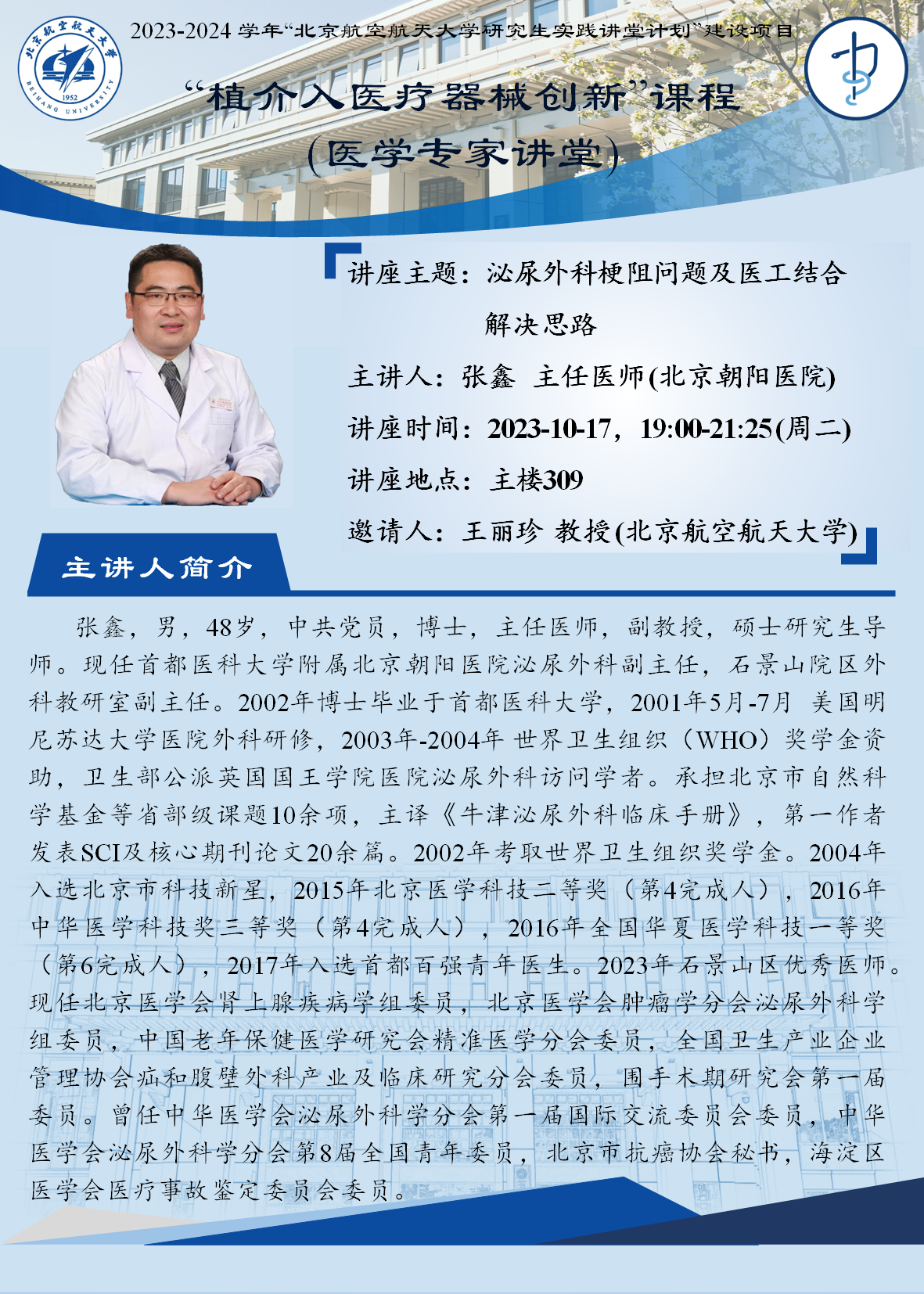 讲座主题:泌尿外科梗阻问题及医工结合解决思路