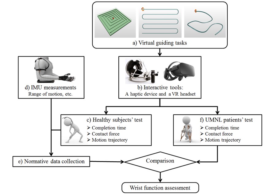 日前,北京市生物医学工程高精尖创新中心樊瑜波教授团队首次将触力反馈结合虚拟现实的先进技术应用于脑卒中患者手腕功能精细动作的康复训练和评测(Design of virtual guiding tasks with haptic feedback for assessing the wrist motor function of patients with upper motor neuron lesions),该成果由北京欧美大片ppt免费大全生物与医学工程学院、北京市生物医学工程高精尖中心与国家康复辅具研究中心合作研究,成果发表于著名的康复领域期刊《IEEE Transactions on Neural Systems and Rehabilitation Engineering》上(Doi 10.1109/TNSRE.2019.2909287,康复工程领域排名第一),北航生物与医学工程学院助理教授刘笑宇博士为论文第一作者,樊瑜波教授为通讯作者。
