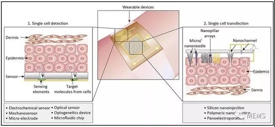 图1 可佩戴单细胞传感器和单细胞基因转染芯片