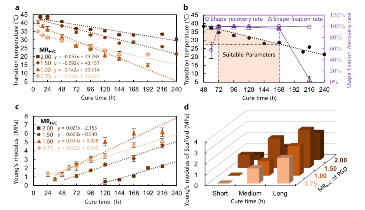 图2 通过材料合成参数调控PGD材料的形状记忆及力学性能以匹配髓核植入需求