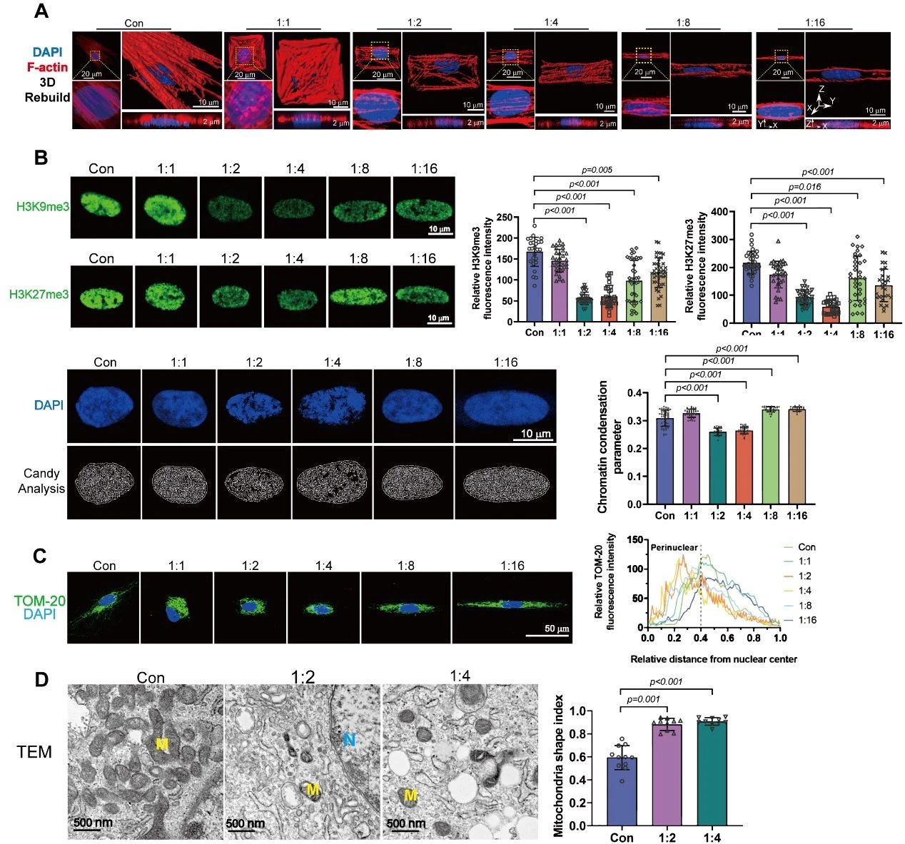 图3 “干细胞健身房”促进了DPSCs的细胞核形态、表观遗传学、染色质结构及线粒体形态分布的重塑